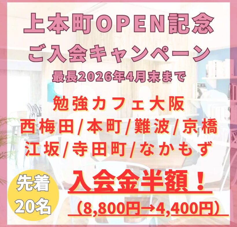 勉強カフェ大阪から「上本町ANNEXオープン記念!春のキャンペーン」を開催中〜